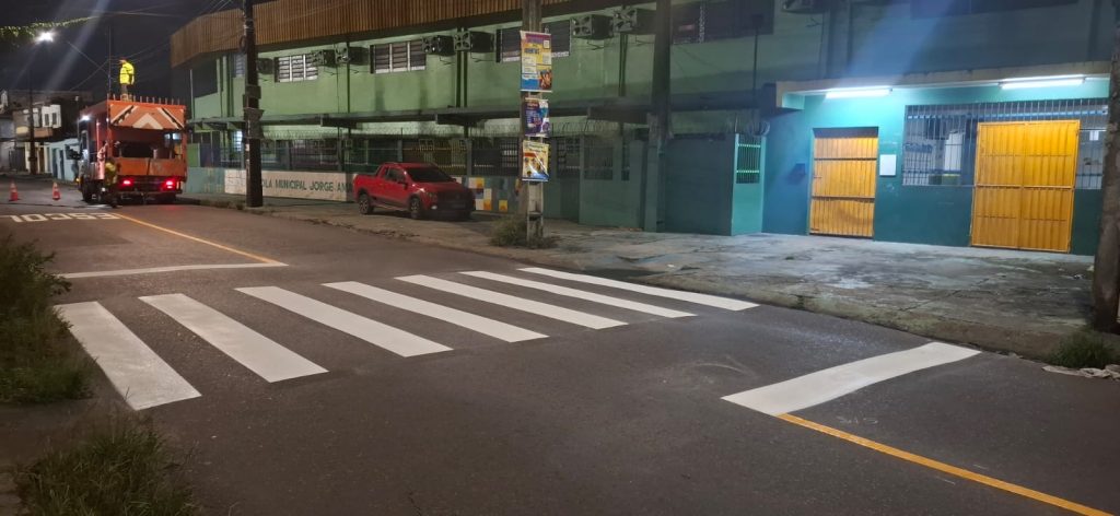 A Prefeitura de Manaus, por meio do Instituto Municipal de Mobilidade Urbana (IMMU), está intensificando os serviços de sinalização viária em diferentes bairros da capital, com foco no ordenamento do trânsito e na segurança de pedestres e motoristas, especialmente em áreas residenciais e no entorno de unidades escolares. As intervenções incluem faixas de pedestres, legendas horizontais, lombadas e placas verticais de regulamentação e advertência.
