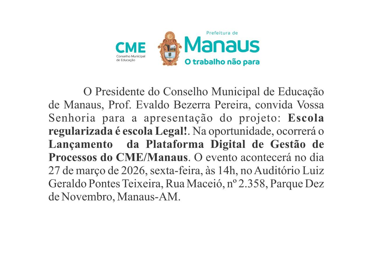 O Conselho Municipal de Educação de Manaus, constituído por 11 (onze) membros, nomeados pelo Chefe do Poder Executivo Municipal, dentre as pessoas com experiência na área de educação e de notório saber, possui a seguinte composição: