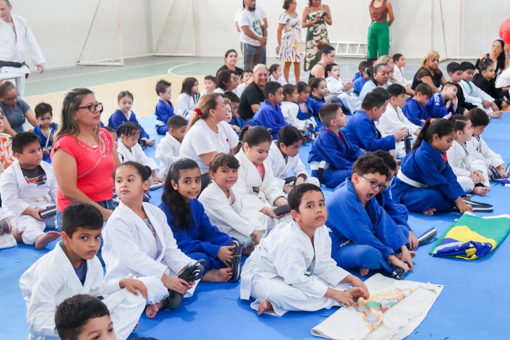 Aproximadamente 120 alunos da Educação Infantil e do 1º ao 5º ano do Ensino Fundamental, do Centro Integrado Municipal de Educação (Cime) Lucia Melo Ferreira Almeida, no bairro Novo Aleixo, zona Norte, da Prefeitura de Manaus, participaram, nesta sexta-feira, 12/12, da solenidade de troca de faixas do projeto “Aprender Lutando”. Idealizada pela Secretaria Municipal de Educação (Semed), a iniciativa promoveu a entrega das faixas cinza e branca de jiu-jítsu às crianças. O evento contou com a presença de professores, pedagogos, além dos pais e responsáveis.