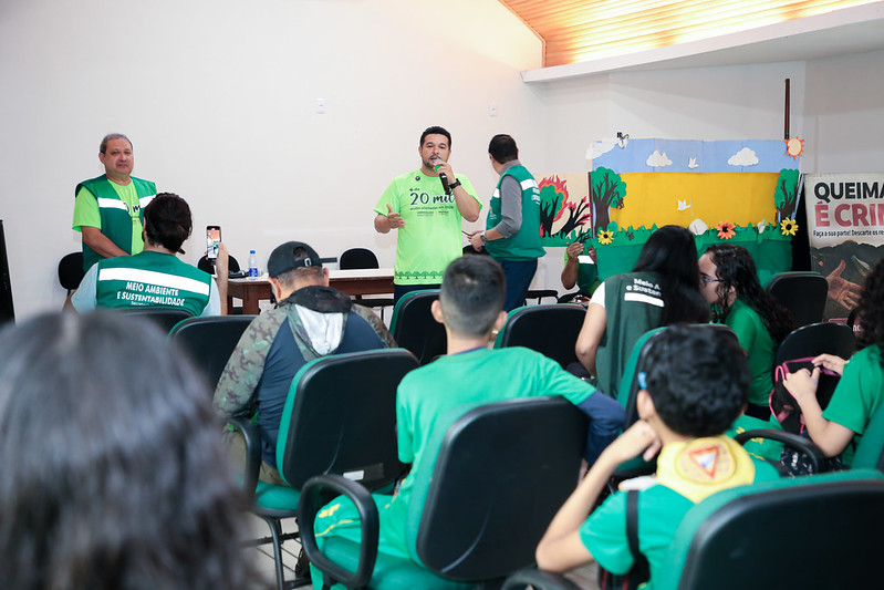 Além da palestra, houve de teatro de fantoches, sensibilização sobre a Prevenção às Queimadas, doação de mudas e plantio simbólico de mudas Sumaúma e Seringueira.