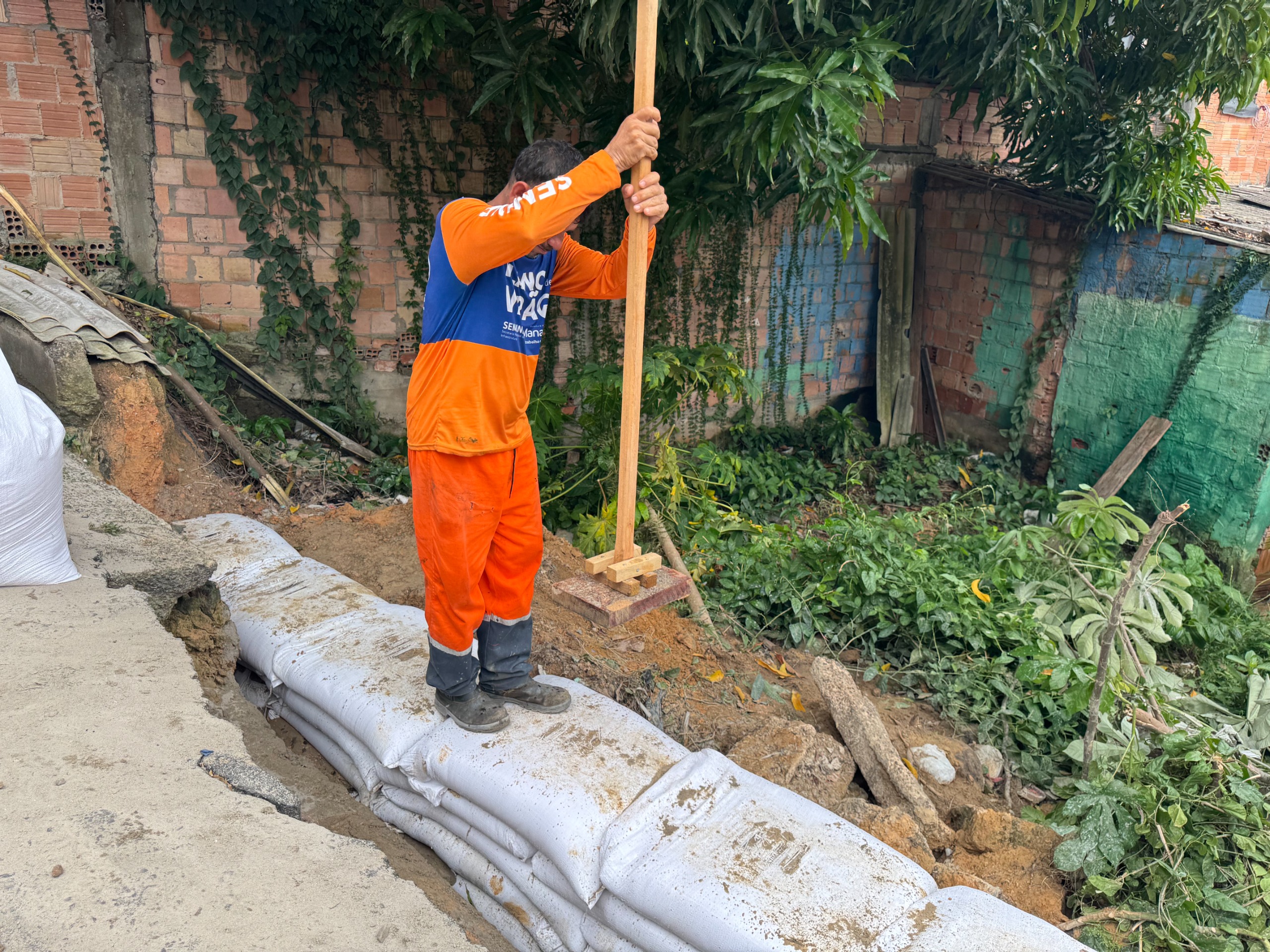 No outro lado da avenida, também na parte do igarapé, as equipes já iniciaram o mesmo processo de concretagem nesta sexta-feira, além dos trabalhos no muro do entorno.