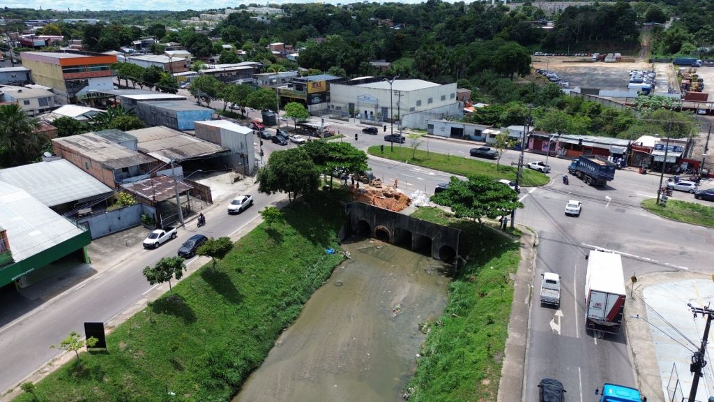 A Prefeitura de Manaus, por meio da Secretaria Municipal de Infraestrutura (Seminf), realizou, nesta sexta-feira, 20/3, uma importante intervenção no igarapé do Passarinho, localizado na avenida Tenente Roxana Bonessi, no bairro Colônia Terra Nova, zona Norte da capital. A ação foi executada após a formação de um processo erosivo na área, garantindo a recuperação da estrutura e a proteção do entorno.