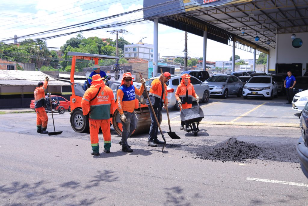 Bairro Praça 14 de Janeiro recebe serviços de manutenção asfáltica da Prefeitura de Manaus