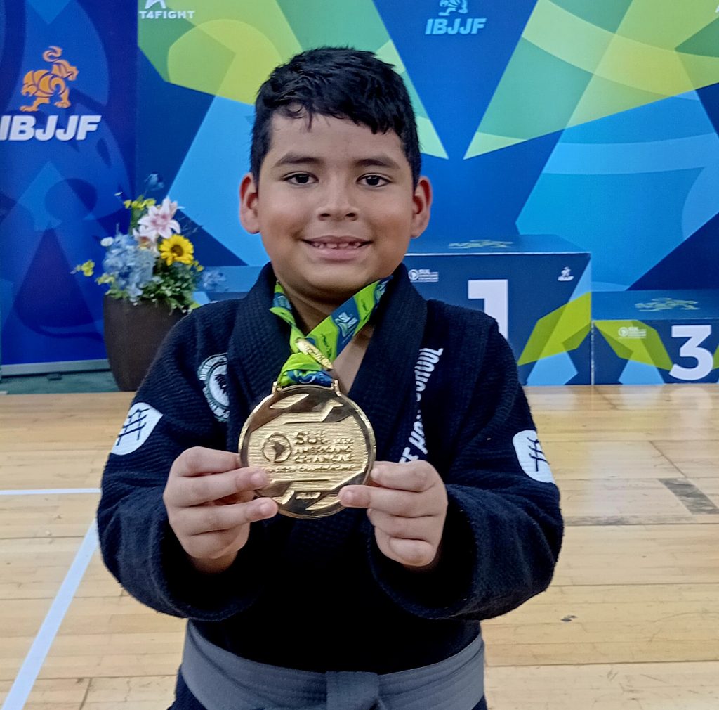 Com apoio da Prefeitura de Manaus, por meio da Secretaria Municipal de Juventude, Esporte e Lazer (Semjel), o atleta Marco Vinícius, conhecido como “Hulk da 14”, de apenas 7 anos, conquistou a medalha de ouro no Campeonato Sul-Americano de Jiu-Jitsu Criança 2026, realizado no Rio de Janeiro (RJ), na categoria Mirim 2, Faixa Cinza Peso Pesado.