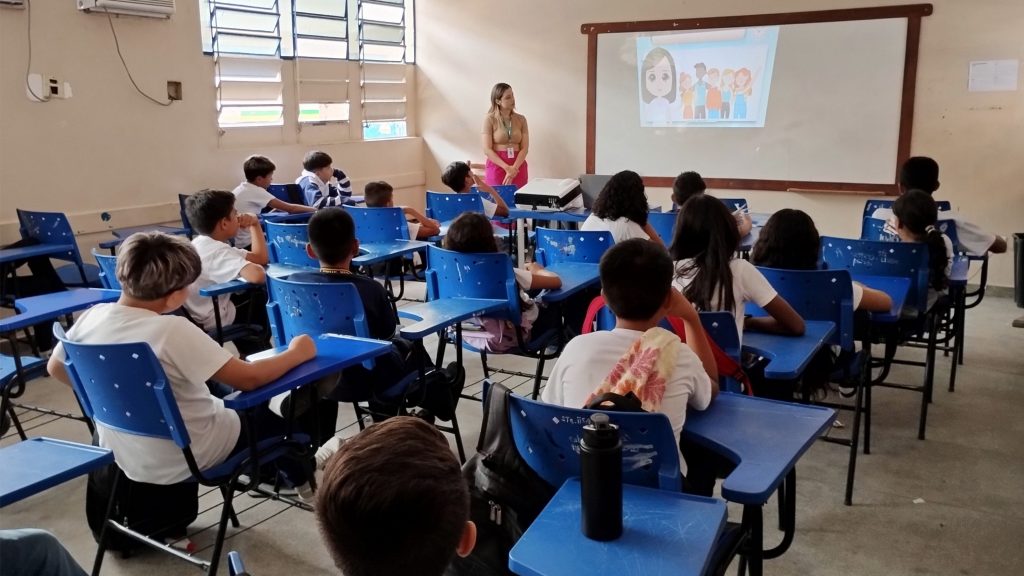 #paratodosverem – Alunos em sala de aula vendo apresentação