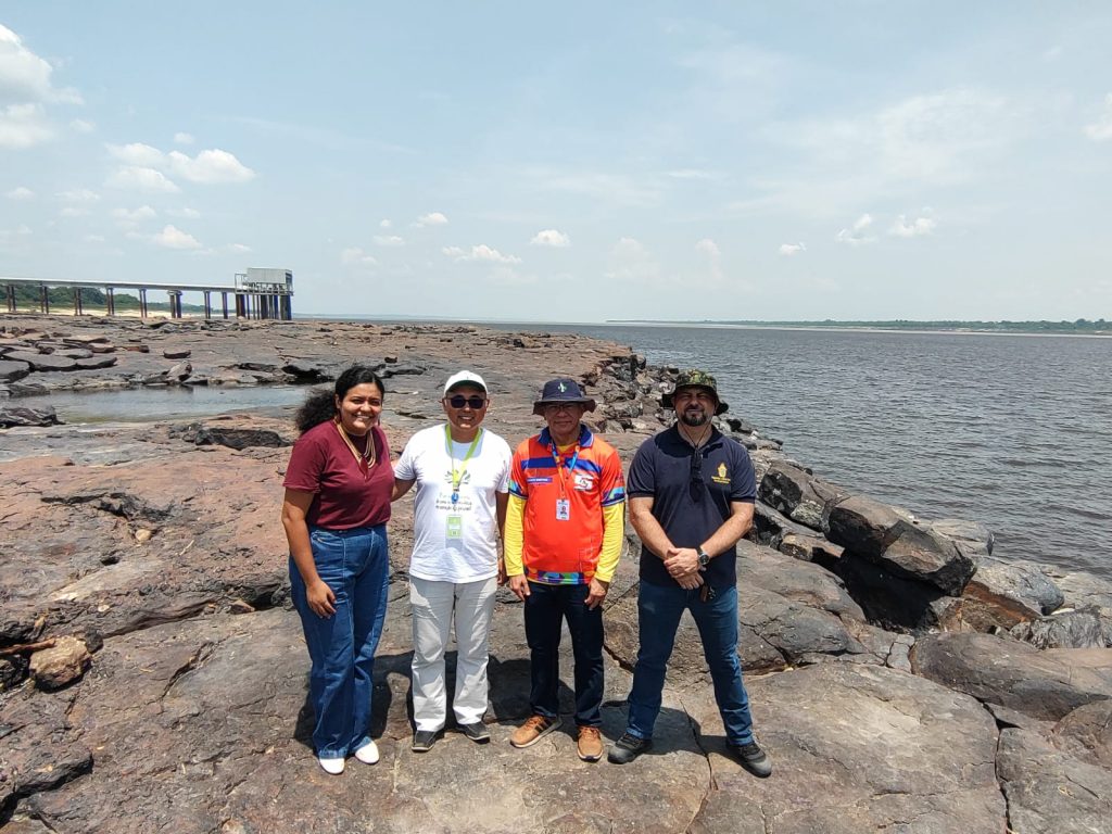 O assessor técnico da Semseg, Ney Andrade; o engenheiro da Sepdec, Renato Martins, chefe da Divisão de Minimização e Prevenção de Desastres da Defesa Civil de Manaus; a superintendente estadual do Iphan no Amazonas, Beatriz Calheiro; o vice-presidente e a coordenadora de Comunicação Institucional do Instituto Soka Amazônia, Milton Fujiyoshi e Dulce Moraes, respectivamente, realizaram visita ao local, após a veiculação de notícias sobre possíveis danos ao pedral com gravuras rupestres visível com a seca do rio.