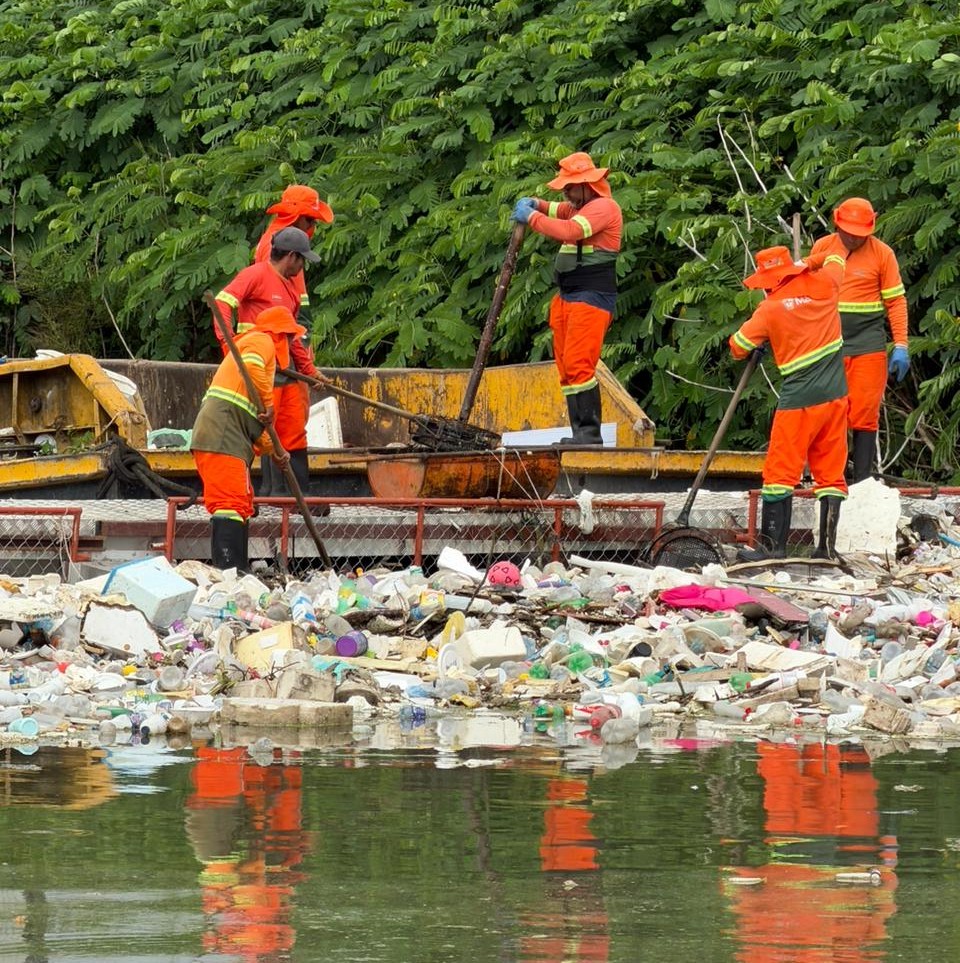 Já na primeira limpeza, a 14ª ecobarreira confirma seu papel estratégico como instrumento de proteção ambiental, uma barreira física que impede que toneladas de resíduos urbanos avancem pelas águas até o rio Negro.